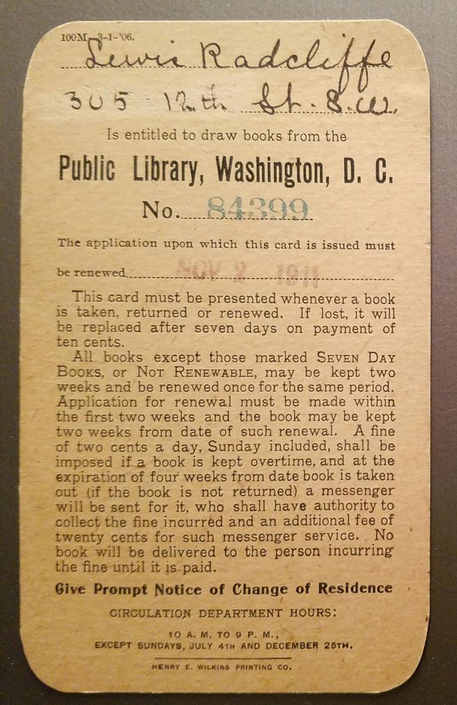 Special Card (teacher) for the Public Library, Washington, DC (back)