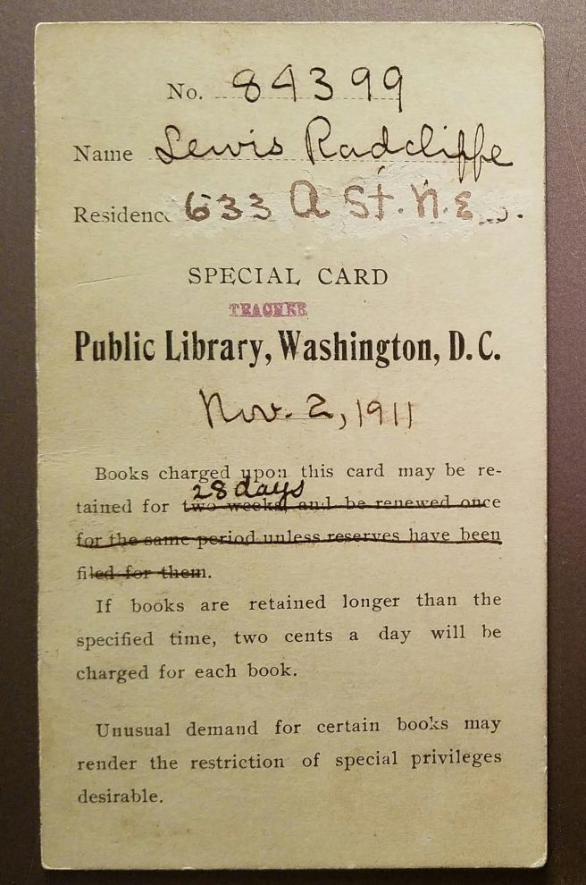 Special Card (teacher) for the Public Library, Washington, DC (front)