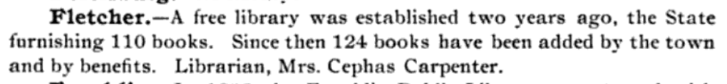 From the Second Biennial Report of the Board of Library Commissioners of Vermont 1897-98, Histories of Libraries, Page 60.