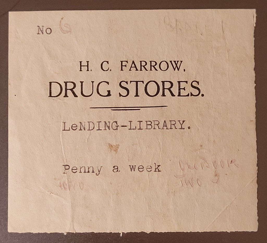 1930s H. C. Farrow Drug Stores Lending Library Ticket No. 6