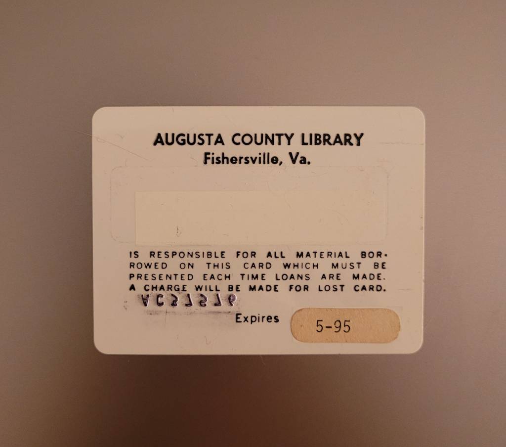 Pre-1995 Library Card and Sleeve for the August County Library