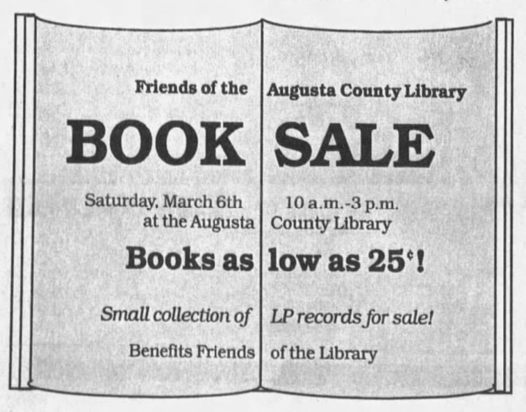 In 1977, after responsibility for the Augusta County Library was transferred from the Augusta County School System to the newly established Augusta County Public Library System, a new facility was built for the library on the Wilson campus. Plans for the new library facility included a reference desk, chess club, children’s story hours, a listening center, local history, and women’s collections, as well as bookmobiles to serve the community. The new library was dedicated on March 20, 1977.