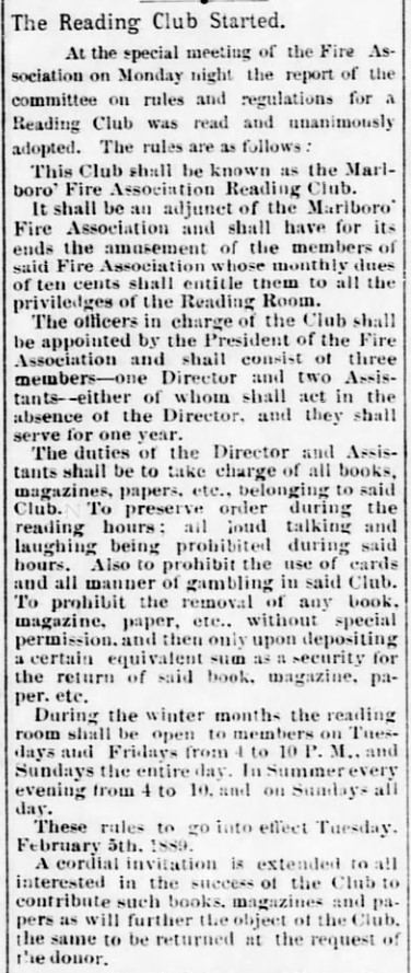 “The Reading Club Started, ”The Prince George’s Enquirer and Southern Maryland Advertiser, January 18, 1889, Page 3