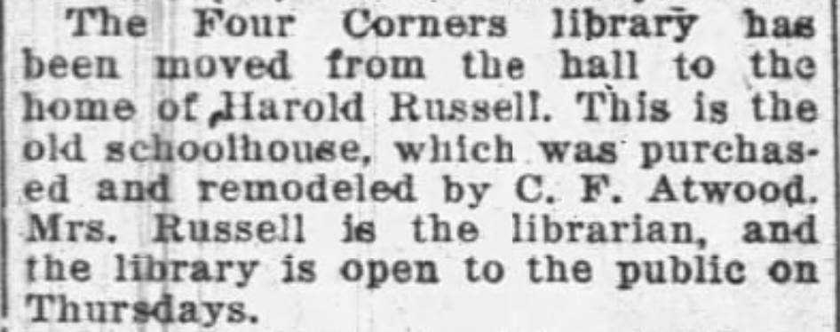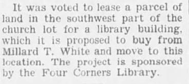 Four Corners Library Dedicated, Vermont Journal, August 23, 1945, Page 8 (Windsor, Vermont)
