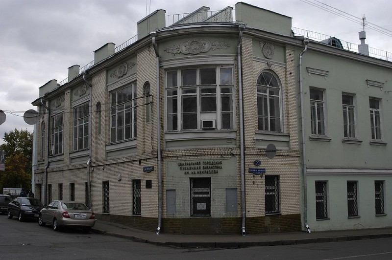 The third location of the Central City Public Library (renamed the Nekrasov near Pushkinskaya Square at 20 Bolshaya Bronnaya (Photo credit: Yuri Virovets) This file is shared under the Creative Commons Attribution 2.0 Generic (CC BY 2.0) License (no changes made to original photo)