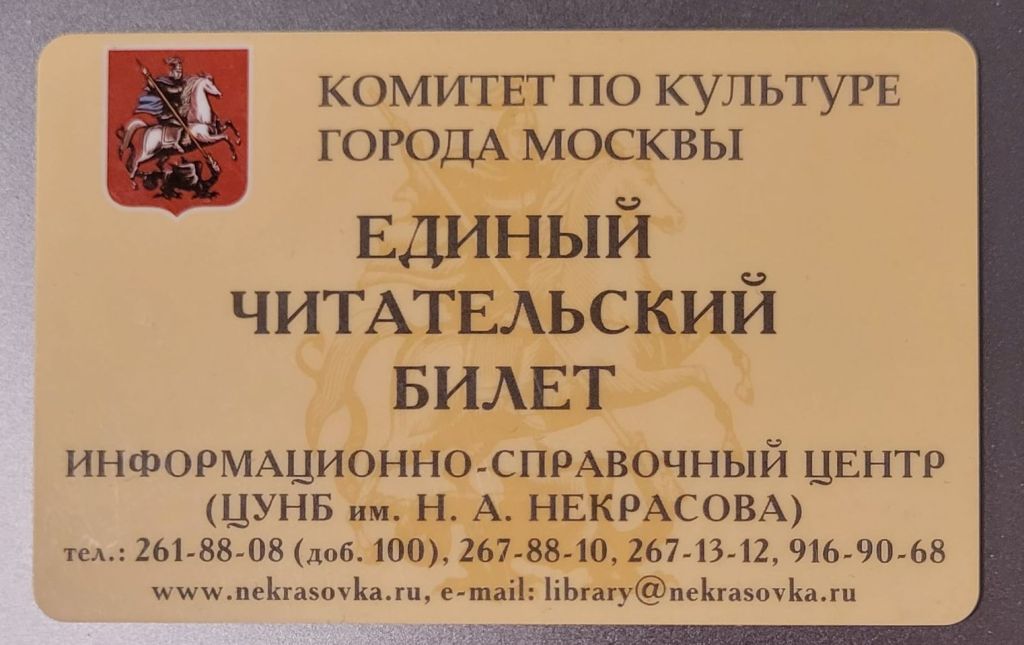 Post-2006 Nekrasov Central Universal Scientific Library Single Reader’s Card
