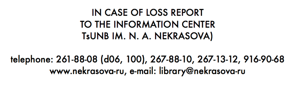Post-2006 Nekrasov Central Universal Scientific Library Single Reader’s Card (back)