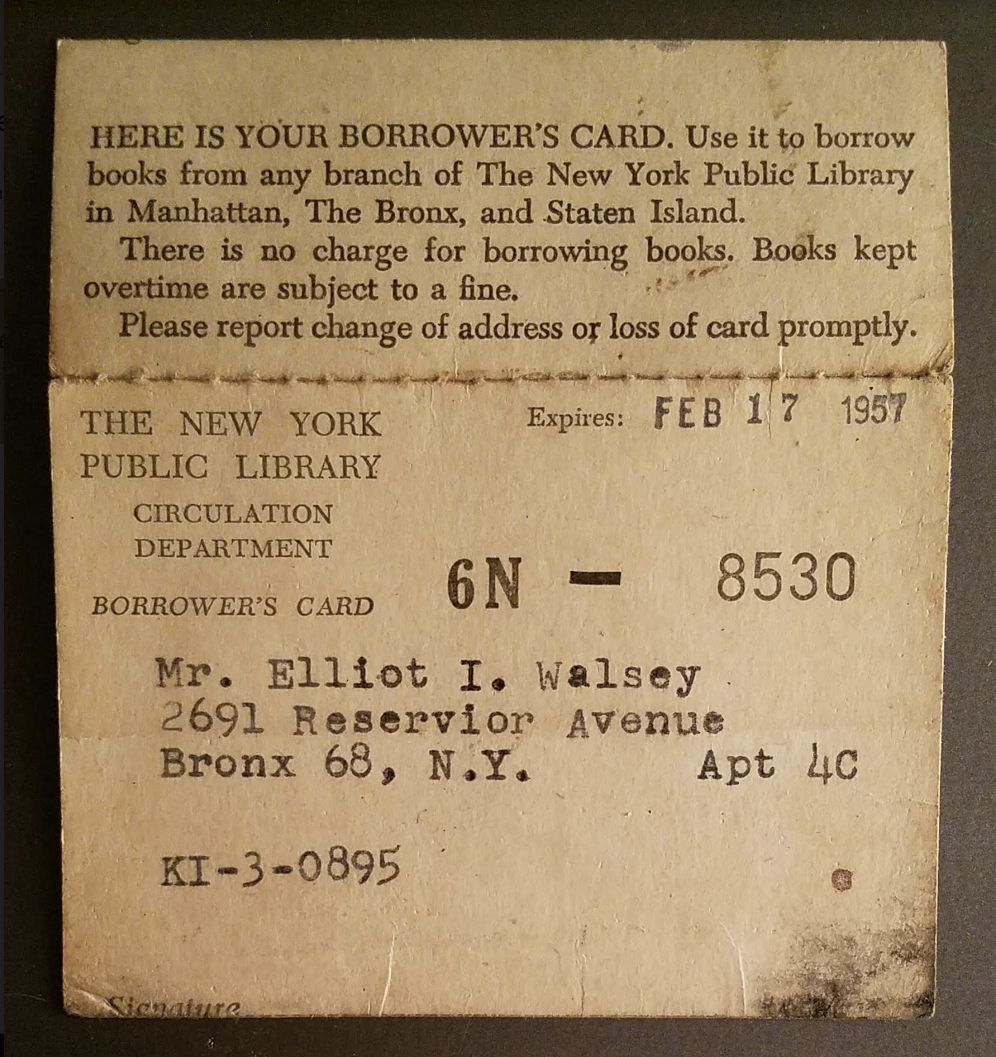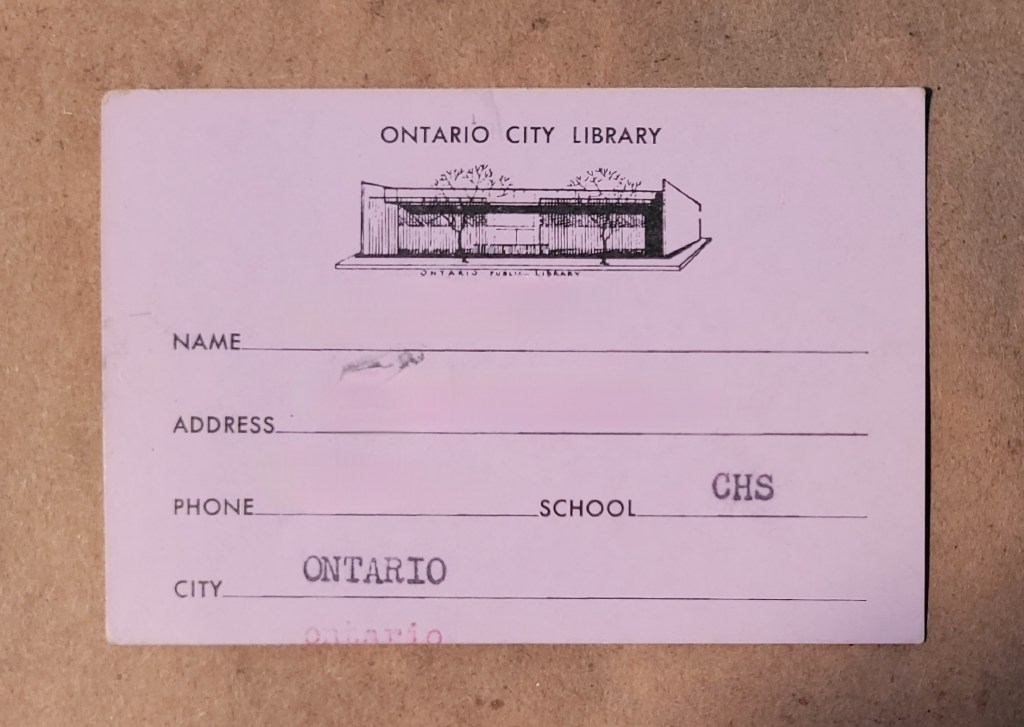 1961-1964 Ontario City Library Card for Chaffey High School Students