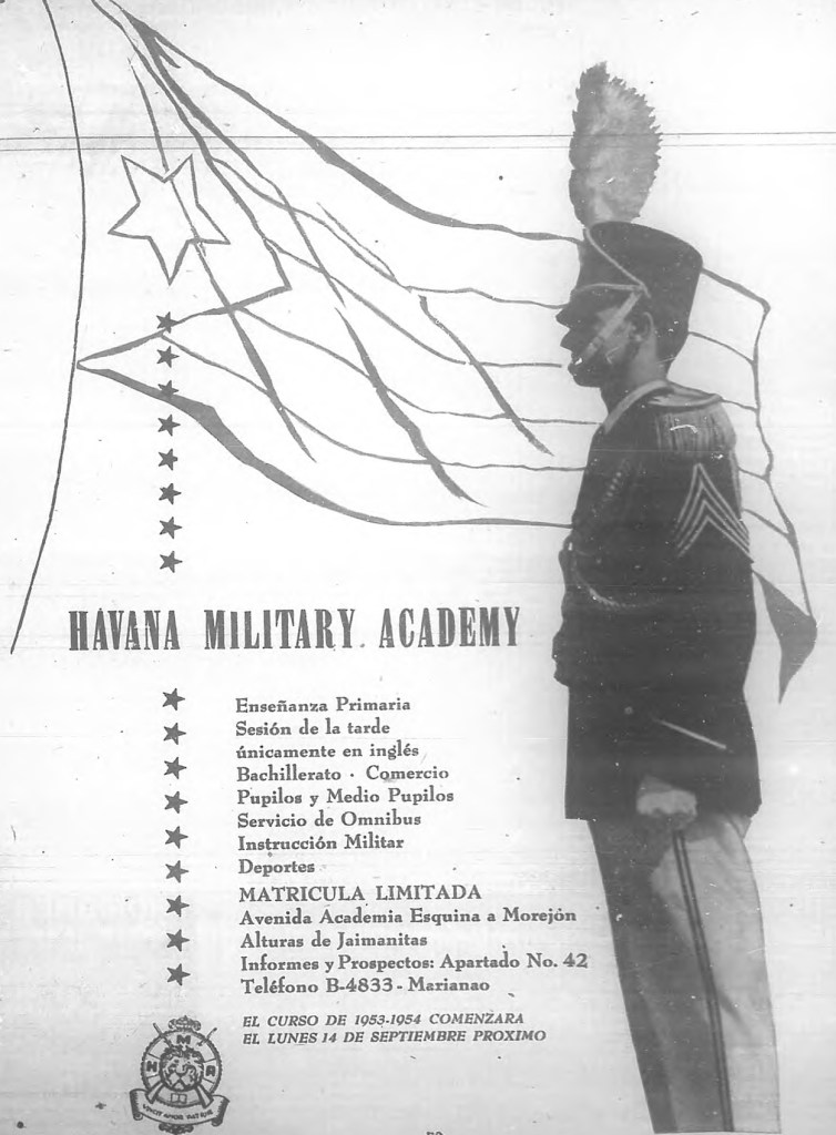 Advertisement for the 1953-1954 School Season of the Havana Military Academy, Havana, Cuba